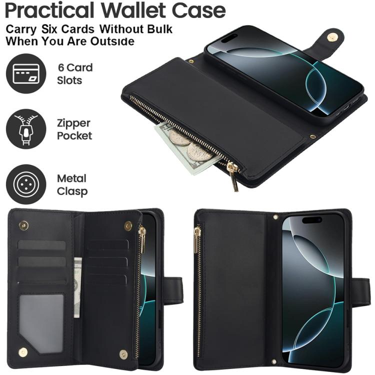 Funda de cuero con cremallera y cordón para iPhone 17 Pro Max YM016 (negro)