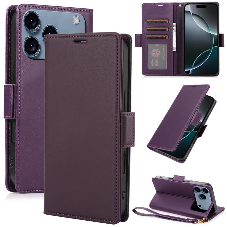 Funda de cuero antirrobo RFID con hebilla lateral para iPhone 17 Pro Max (morado oscuro)