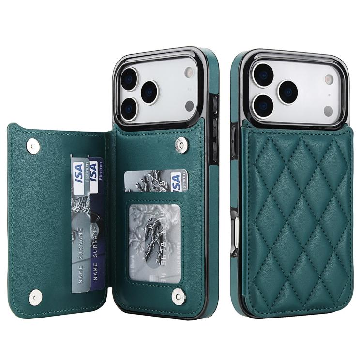 Funda de piel sintética con doble hebilla rómbica para iPhone 17 Pro Max (verde)