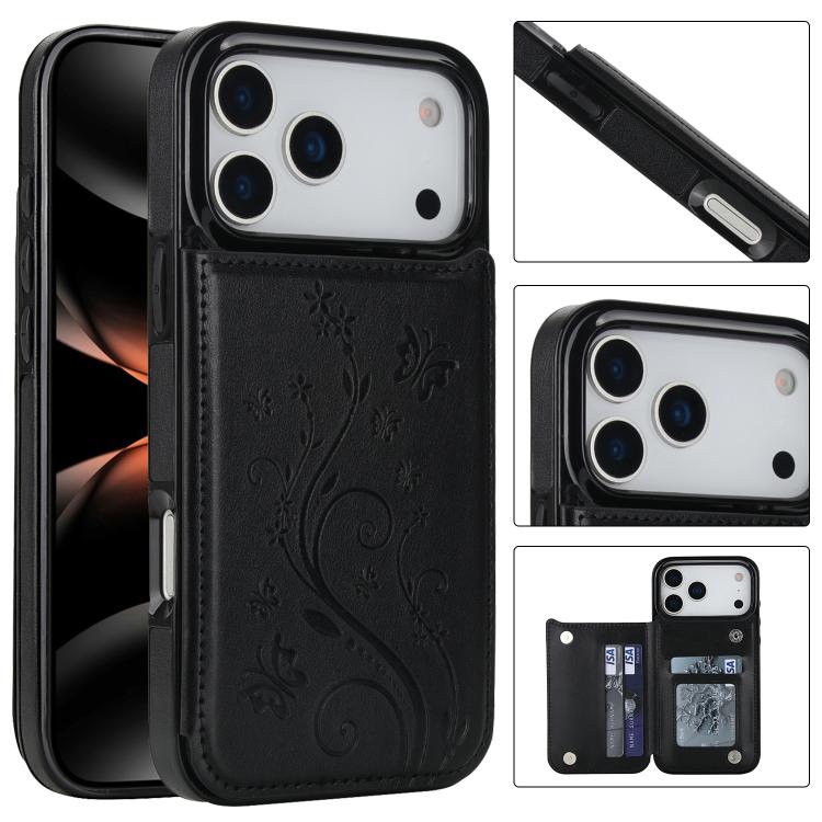 Funda de PU con doble hebilla y estampado de mariposa para iPhone 17 Pro Max (negra)