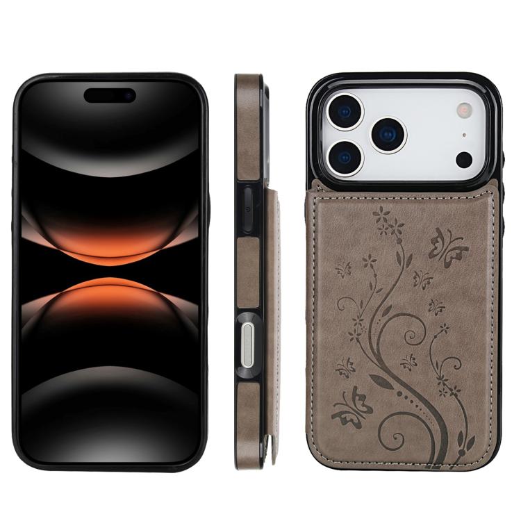 Funda de PU con doble hebilla y estampado de mariposa para iPhone 17 Pro Max (gris)