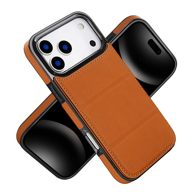Funda de cuero PU + TPU a prueba de golpes para iPhone 17 Pro Max (marrón claro)