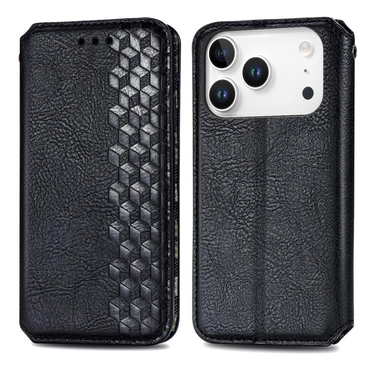 Funda de cuero magnética con diseño de cuadrícula cúbica para iPhone 17 Pro (negra)