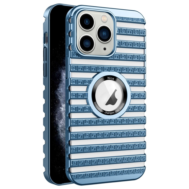 Caja de teléfono hueca galvanizada para iPhone 11 Pro Max con escalera de enfriamiento (Azul)