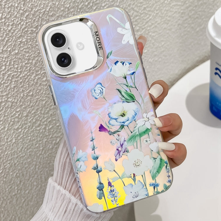 Caja del Teléfono TPU para iPhone 16 con Textura de Flor Láser Galvanizada (Morning Glory)