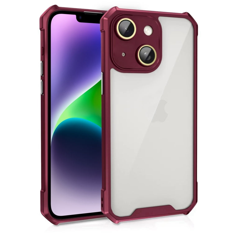 Estuche acrílico para iPhone 14 Plus a prueba de golpes con Película de vidrio para Lentes (Rojo Vino)