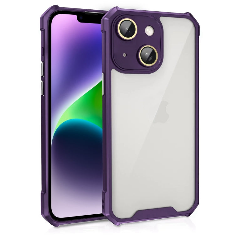 Estuche Acrílico para iPhone 14 Plus a Prueba de Golpes con Película de Vidrio para Lentes (Púrpura)