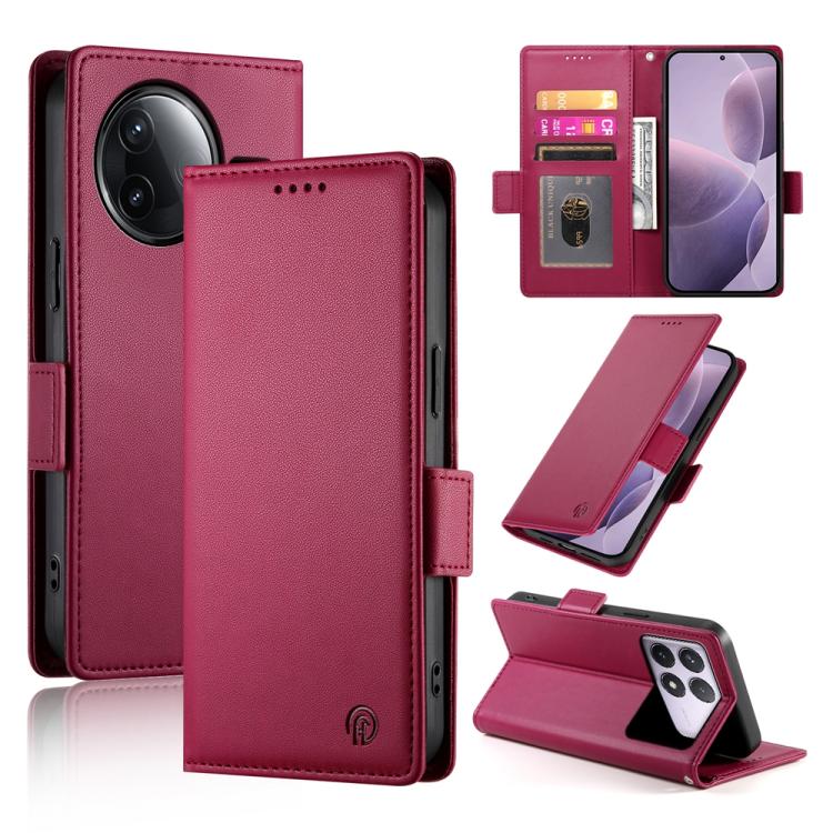 Funda de cuero esmerilado con hebilla lateral magnética para Redmi K80/K80 Pro (rojo vino)