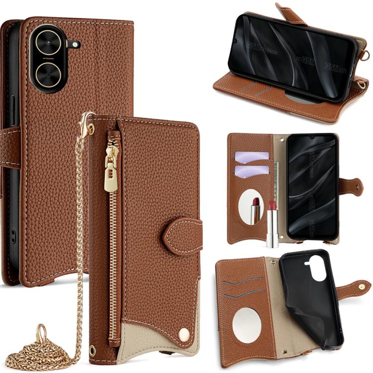 Funda de cuero de lichi con cadena cruzada y cola de pez para Redmi A5 4G (171,7 mm) (marrón)