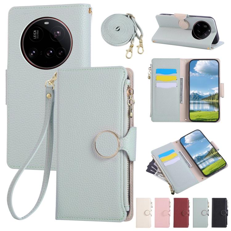 Funda de cuero con hebilla redonda y cremallera para Xiaomi 15 Ultra, con correa cruzada (azul cielo)