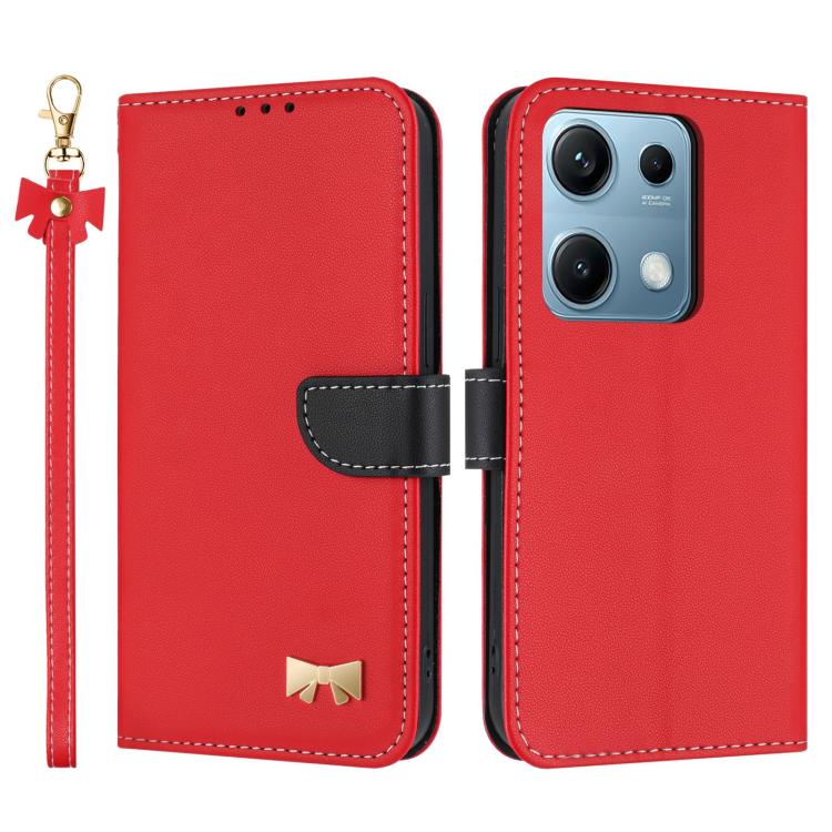 Funda de cuero con lazo metálico y correa de mano para Redmi Note 14S 4G (roja)