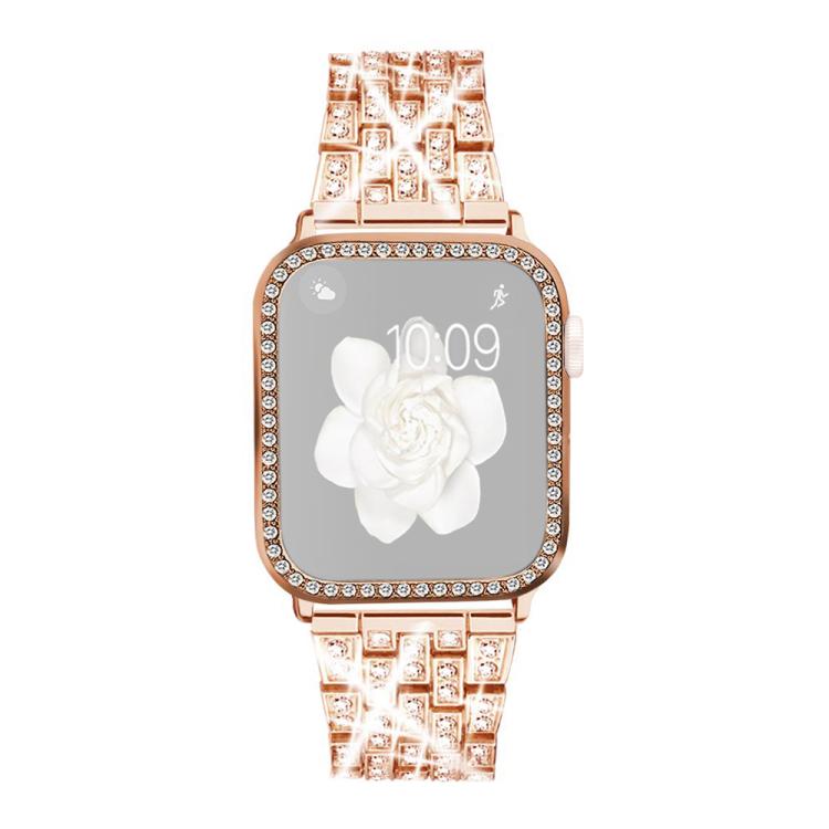 Correa de metal con diamantes brillantes y estuche para Apple Watch Series 45 mm xDfind (oro rosa)