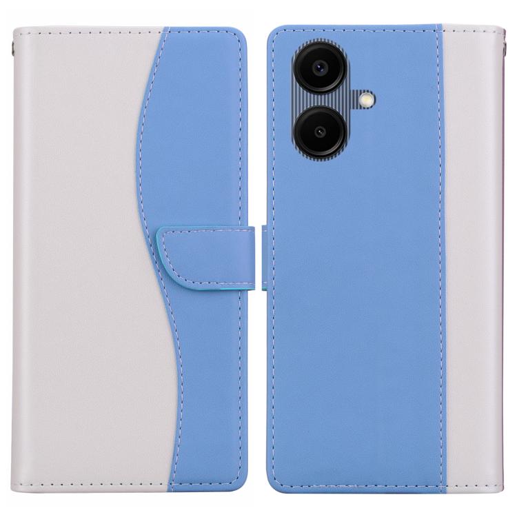 Funda de cuero bicolor con relieve para Samsung Galaxy A06 4G/5G (blanco y azul)