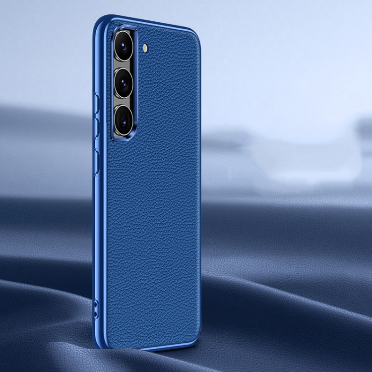 Para Samsung Galaxy S23 5G Litchi Texture Funda de teléfono de cuero genuino (Azul)