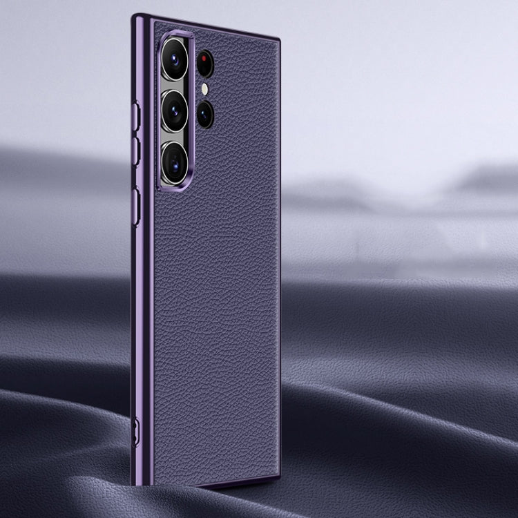 Para Samsung Galaxy S23 Ultra 5G Litchi Textura Funda de teléfono de cuero genuino (Púrpura)