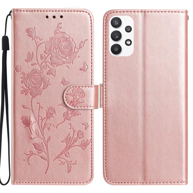 Funda de cuero con estampado floral en relieve para Samsung Galaxy A23 (oro rosa)