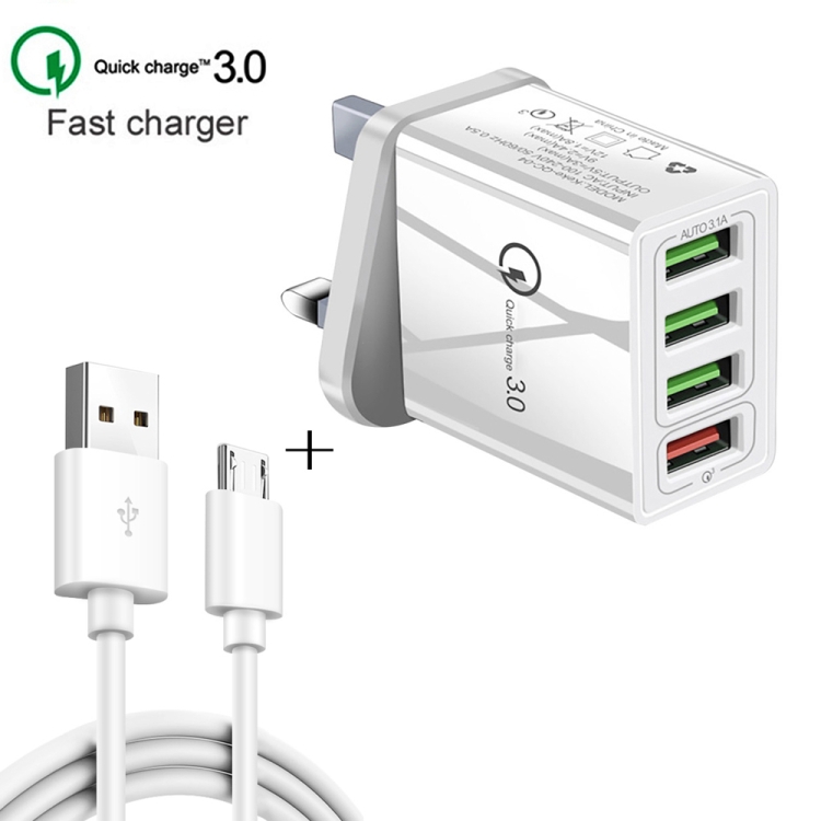 El Cable 2 en 1 USB a Micro USB junto con el Cargador de 30W Quick Charge 3.0 es un dispositivo multifuncional diseñado para proporcionar una solución integral de Carga y transferencia de datos para Móviles, tablets y PCs. Este Conjunto combina un Cable de datos con capacidad para Carga rápida y transmisión eficiente de datos, y un Cargador de alta potencia con cuatro interfaces USB, incluyendo una salida compatible con la tecnología QC 3.0. Compatible con una amplia gama de dispositivos electrónicos como Teléfonos Móviles, tabletas, Cámaras y reProductores multimedia, este Producto ofrece una Corriente total de salida de 6A que permite Cargar múltiples dispositivos simultáneamente de forma inteligente y segura. El Cargador está fabricado con material PC ignífugo, garantizando resistencia a altas temperaturas y durabilidad.