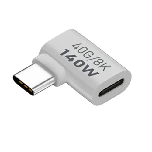- 1x Adaptador de Transmisión USB 3.1 Tipo C Macho a Tipo C Hembra Curva Lateral 40 Gbps 8K Carga 140W 5A