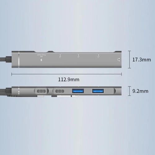 • 1x Adaptador Hub Multifunción 5 en 2 USB-C Tipo-C y 8 Pines (Gris)