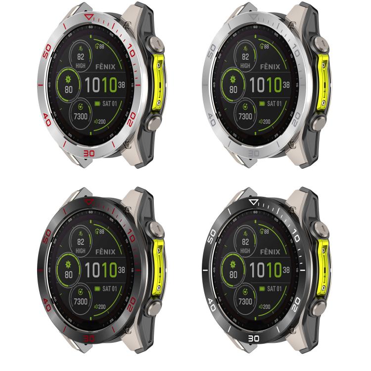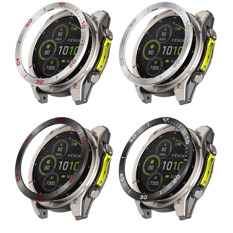 Anillo protector de acero inoxidable para reloj Garmin Tactix 8 Solar de 51 mm con zona horaria (plata y rojo)