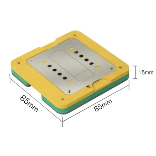 La malla de plantación de estaño BaKu 3D BGA CPU Tin Planting Mesh está diseñada específicamente para la reparación de la Placa Base del iPhone A11 (2021). Este dispositivo permite un posicionamiento rápido, estable y preciso durante la replantación de estaño en chips BGA, facilitando el trabajo de técnicos y usuarios que reparan por cuenta propia. Fabricada con materiales resistentes a altas temperaturas, la malla mantiene su forma sin deformarse ni generar soldaduras virtuales, asegurando una fuerza duradera y una operación segura. Sus dimensiones compactas de 85 x 85 x 15 mm y un peso de 376 gramos la hacen manejable y eficiente para trabajos profesionales en el ámbito de la reparación electrónica.