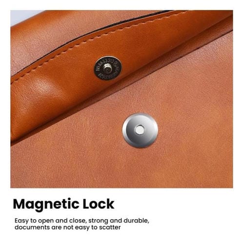 2. Fabricado en cuero sintético duradero e impermeable, protege los documentos y dispositivos electrónicos de la humedad y el desgaste diario, garantizando un uso duradero.