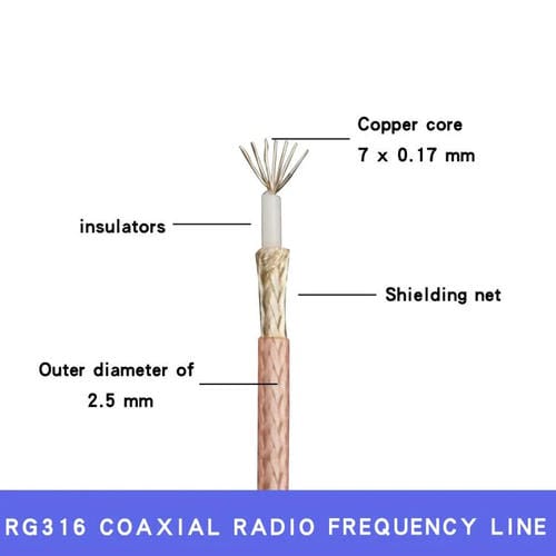 • Material del Cable: RG316 con aislamiento de PVC y teflón retardante de llama