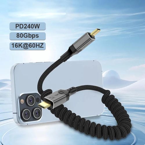 Cable de conversión de resorte para proyección DOONJIEY DJUSB510GR de 80 Gbps, tipo C, 16K HD (negro)