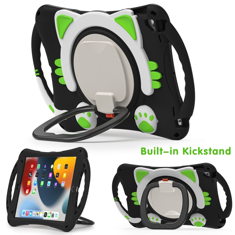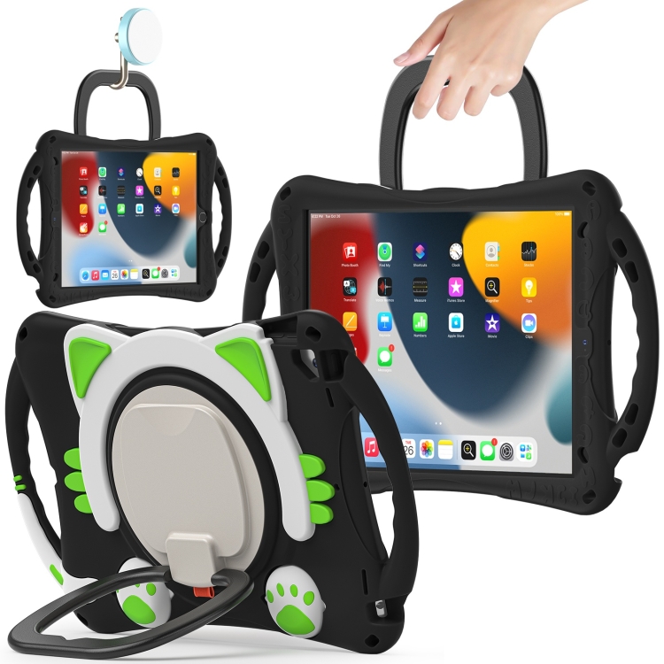 Caja Protectora Eva Rey del Gato Lindo para iPad 10.2 2019/2020/2021 Pro 10.5 con Soporte Correa y Manija (Verde Negro)