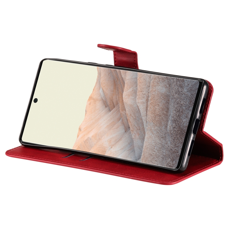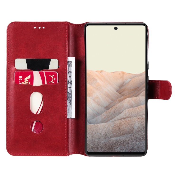 Carcasa clásica de la textura de la carne de becerro PU + TPU Horizontal Funda de cuero con soporte y ranuras para tarjetas y billetera para Google Pixel 6 Pro (rojo)