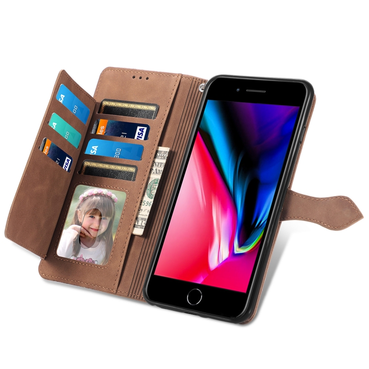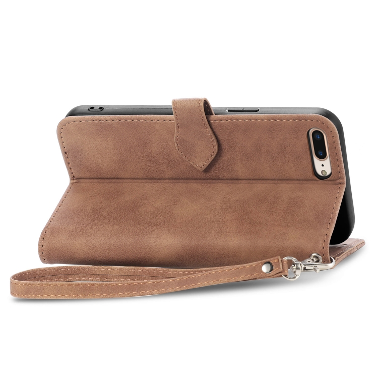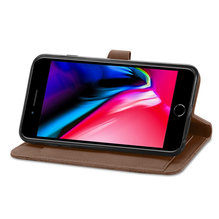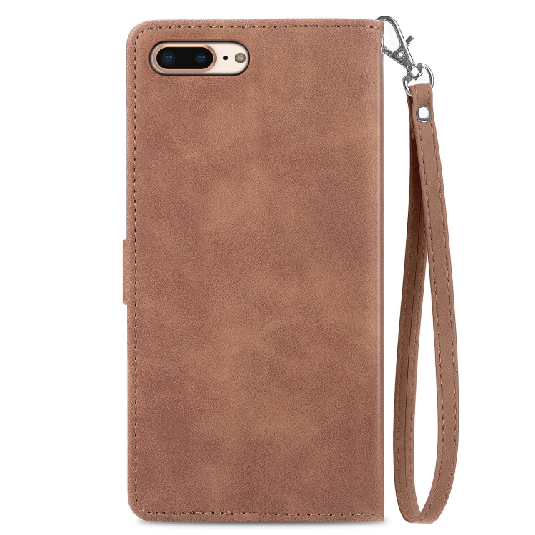 Case de Teléfono Cuero a Prueba de Choque Flores En Relieve para iPhone 8 Plus / 7 Plus (Marrón)