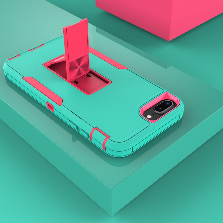 Case de Teléfono Soporte Magnético iPhone 8 Plus 7 Plus (Verde + Rosa Rojo)
