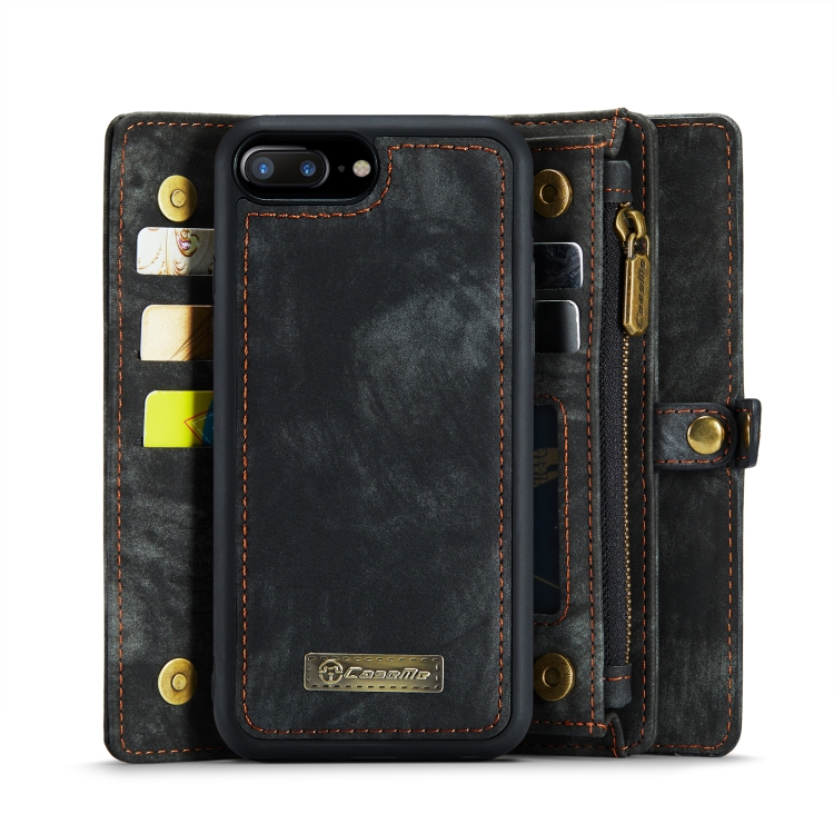 Funda Cartera Caseme para iPhone 8 Plus y 7 Plus Cuero Multifuncional con Estuche Protector Trasero Magnético (Negro)