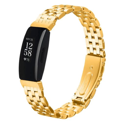 Correa de acero con hebilla de tirachinas de cinco cuentas para Fitbit Inspire 1/Inspire 2 (dorada)