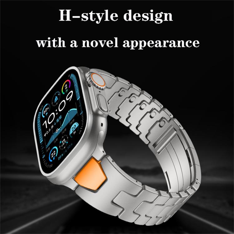 Correa de acero inoxidable con hebilla de mariposa y liberación rápida tipo H para Apple Watch de 42 mm, 41 mm, 40 mm y 38 mm (titanio)
