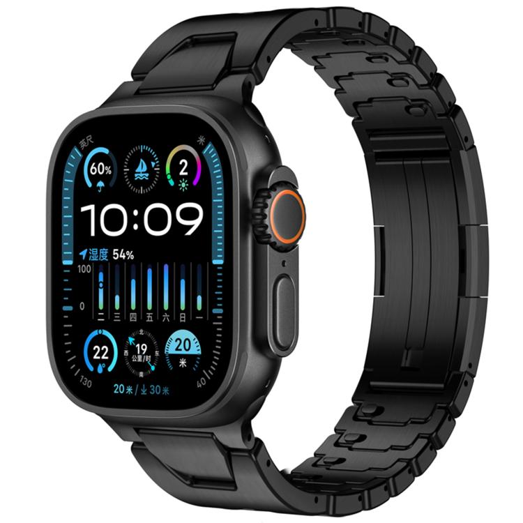 Correa de acero inoxidable con hebilla de mariposa y liberación rápida tipo H para Apple Watch de 44 mm, 45 mm, 46 mm y 49 mm (negra)