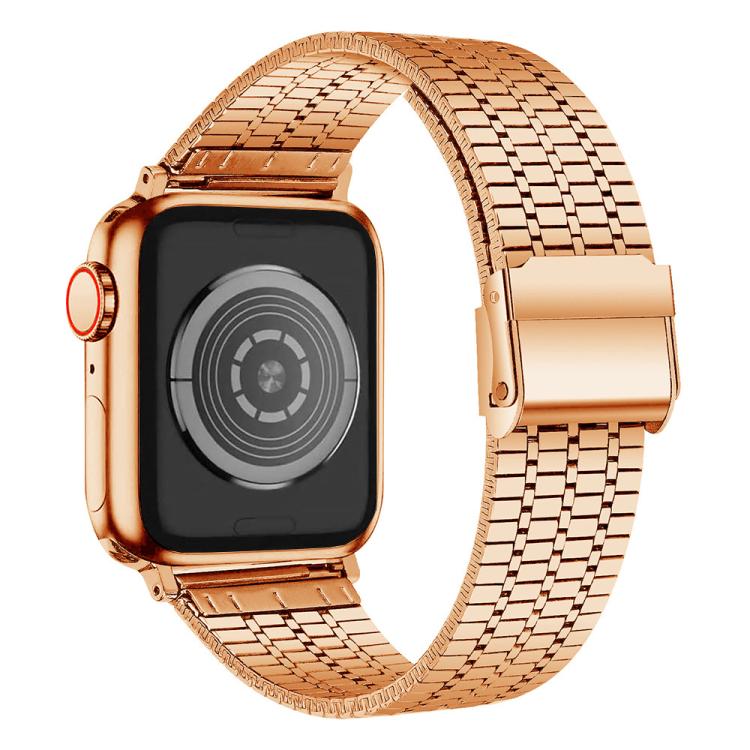 Correa de acero inoxidable con hebilla de siete cuentas para Apple Watch de 42, 44, 45, 46 y 49 mm (oro rosa)
