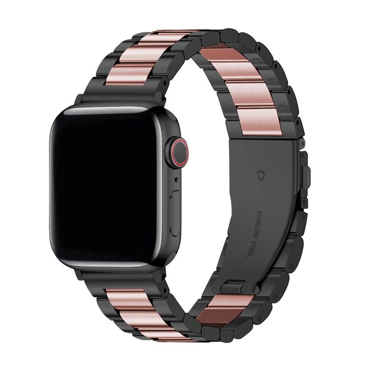 Correa de acero inoxidable con tres cuentas y película curva 3D para Apple Watch Series 10 de 42 mm (negro rosa)