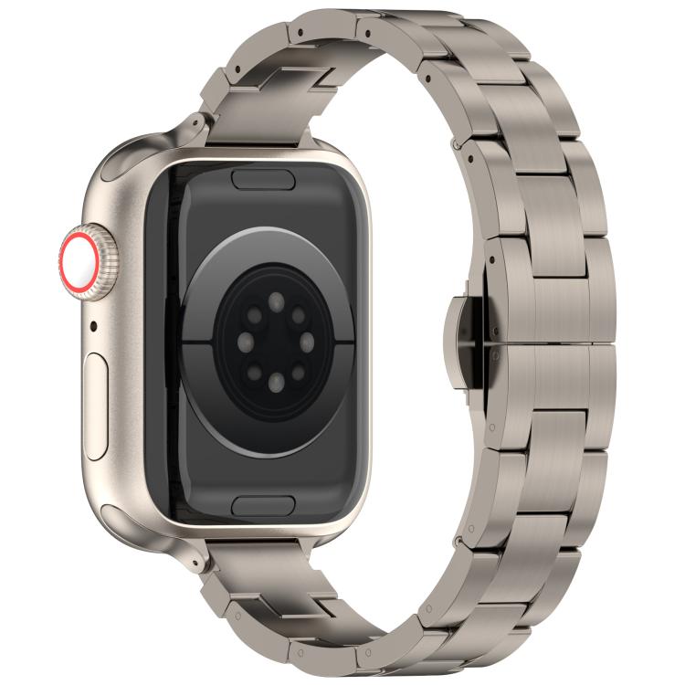 Correa de aleación de titanio con hebilla de mariposa de tres cuentas y cintura delgada para Apple Watch de 42 mm / 41 mm / 40 mm / 38 mm (Titanio)