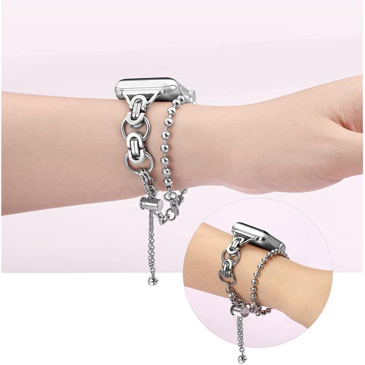 Correa de aleación de zinc con cadena de cuentas de doble círculo para Apple Watch de 46 mm, 49 mm, 45 mm y 44 mm (plateada)