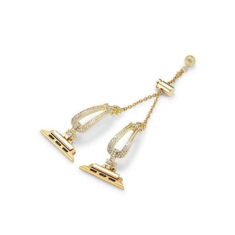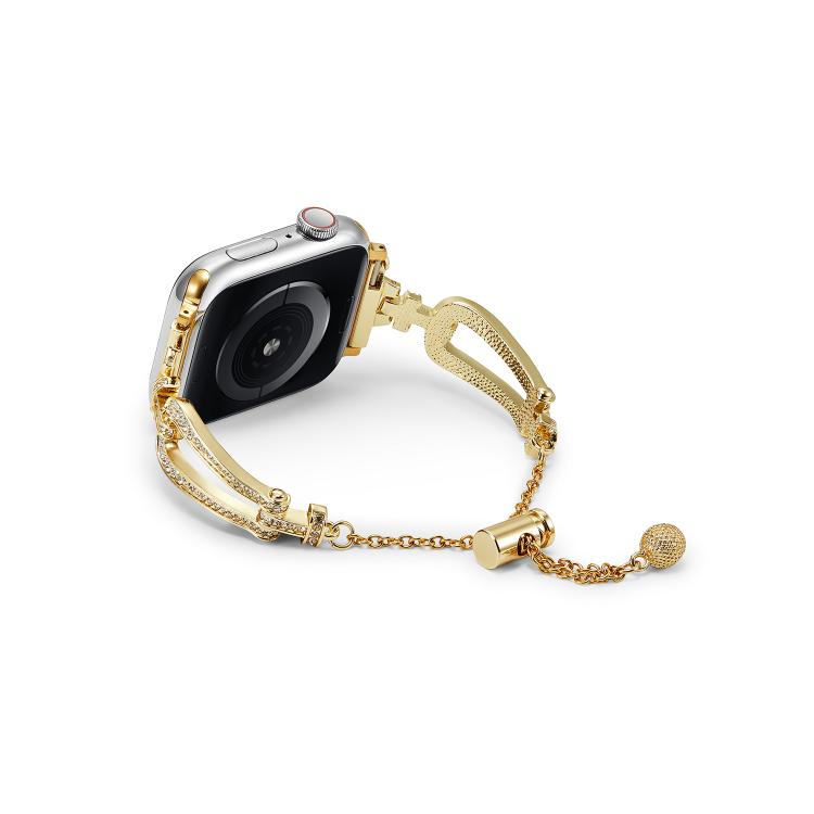 Correa de aleación de zinc con diamantes en forma de U para Apple Watch de 42 mm, 41 mm, 40 mm y 38 mm (dorada)