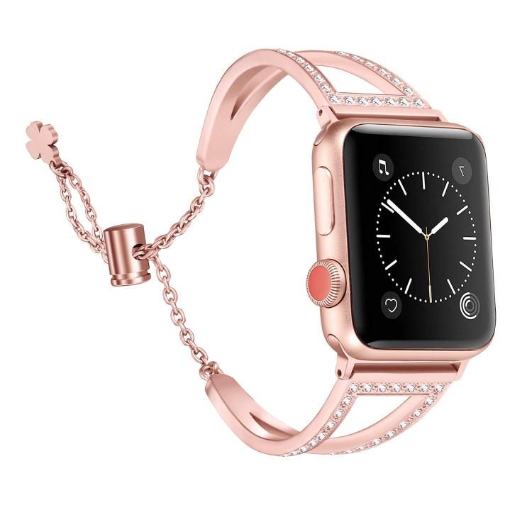 Correa de aleación de zinc con diamantes en forma de V para Apple Watch de 42 mm, 41 mm, 40 mm y 38 mm (rosa)