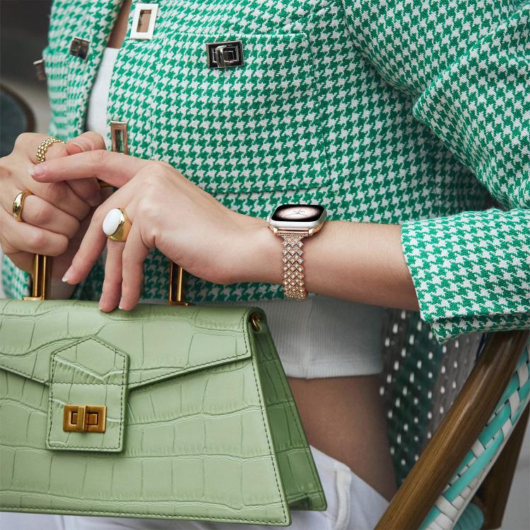 Correa de aleación de zinc con diamantes rómbicos para Apple Watch de 46 mm, 49 mm, 45 mm y 44 mm (oro rosa)