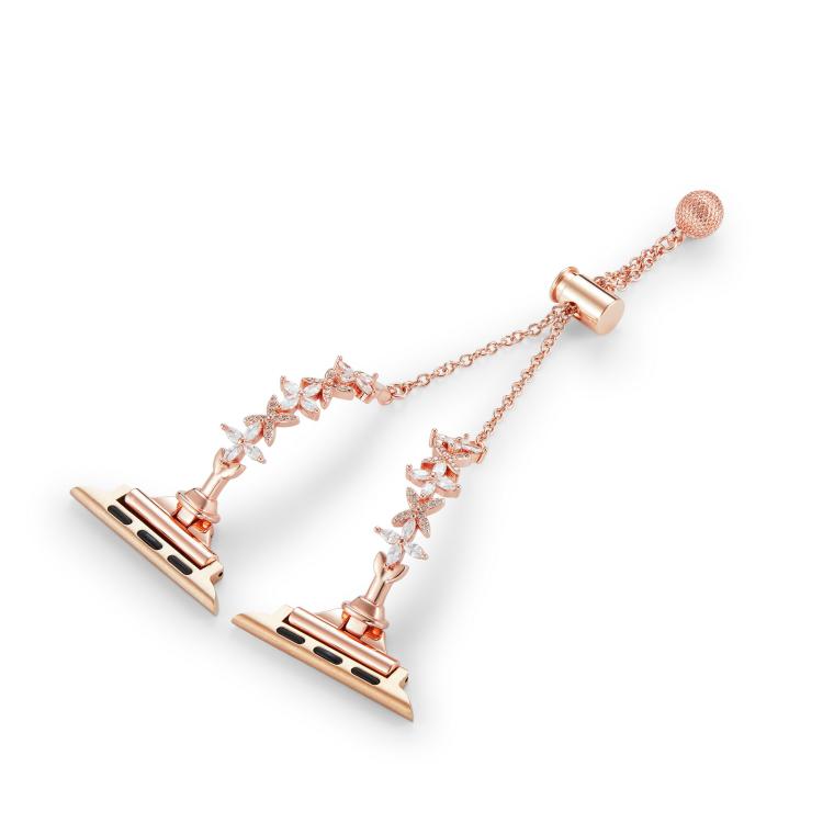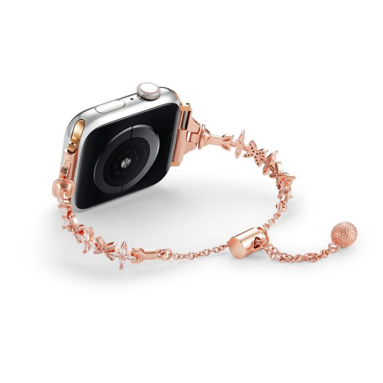 Correa de aleación de zinc con diamantes y trébol de cuatro hojas para Apple Watch de 46 mm, 49 mm, 45 mm y 44 mm (oro rosa)