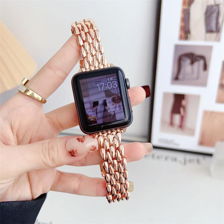 Correa de aleación de zinc con diseño de gota de agua para Apple Watch de 42 mm, 41 mm, 40 mm y 38 mm (oro rosa)