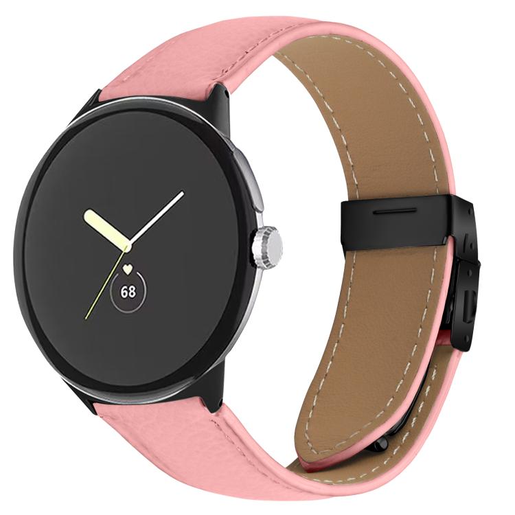 Correa de cuero con hebilla de caparazón de tortuga negra con textura de lichi de 41 mm para Google Pixel Watch 4 / 3 / 2 / 1 (rosa)