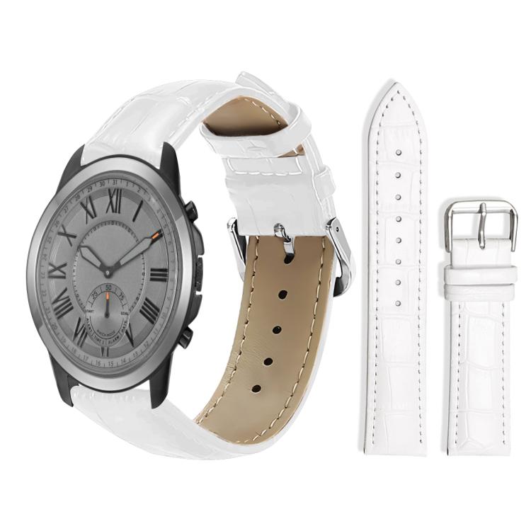 Correa de cuero con hebilla de pasador y textura de bambú de 24 mm para reloj híbrido Fossil Q Machine xDfind (blanco)