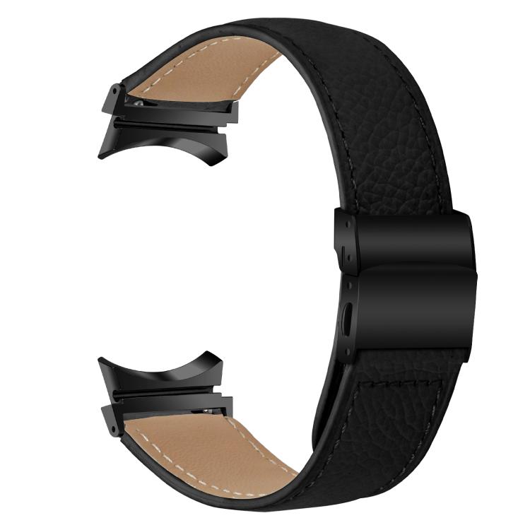 Correa de cuero con hebilla trasera de tortuga negra y textura de lichi para Samsung Galaxy Watch 7 (40/44 mm) (negro)