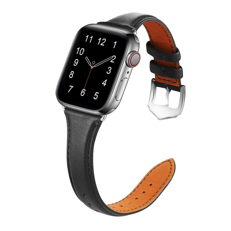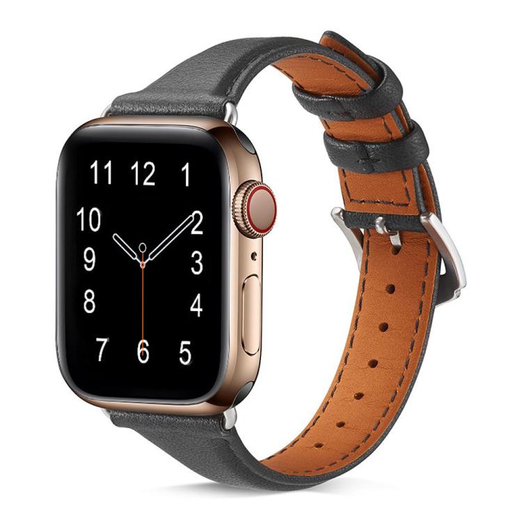 Correa de cuero genuino con hebilla pequeña para Apple Watch de 42 mm, 41 mm, 40 mm y 38 mm (negra)