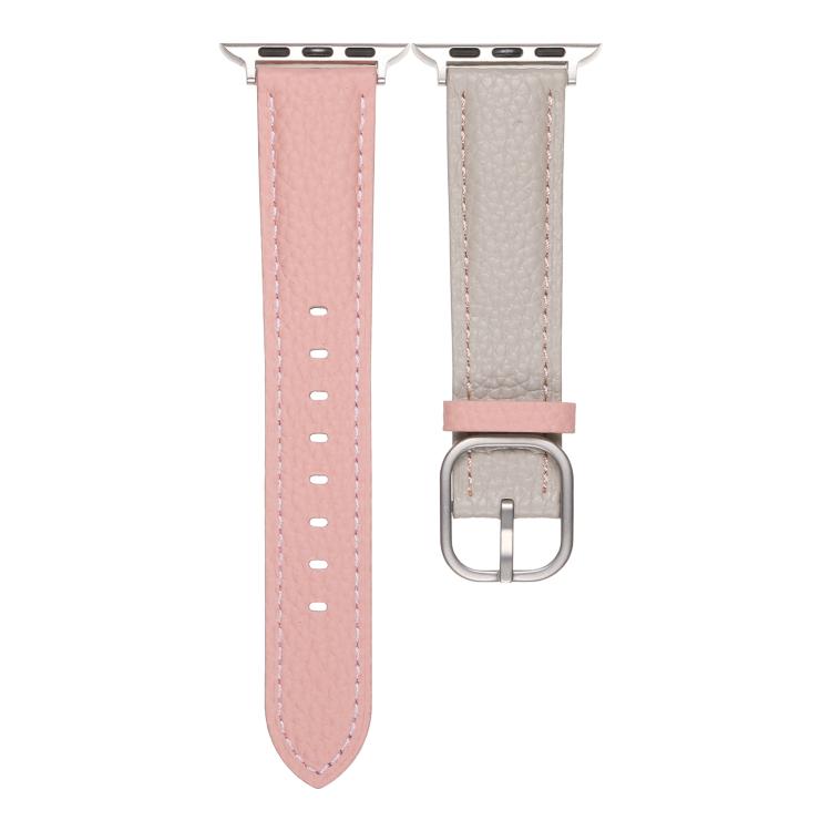 Correa de cuero genuino con textura de lichi y hebilla cuadrada para Apple Watch de 46 mm, 49 mm, 45 mm y 44 mm (gris trinchera y rosa)